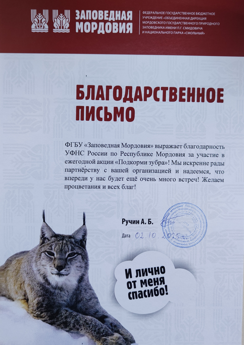 Члены профорганизации УФНС России по РМ приняли участие в акции «Подкорми зубра»