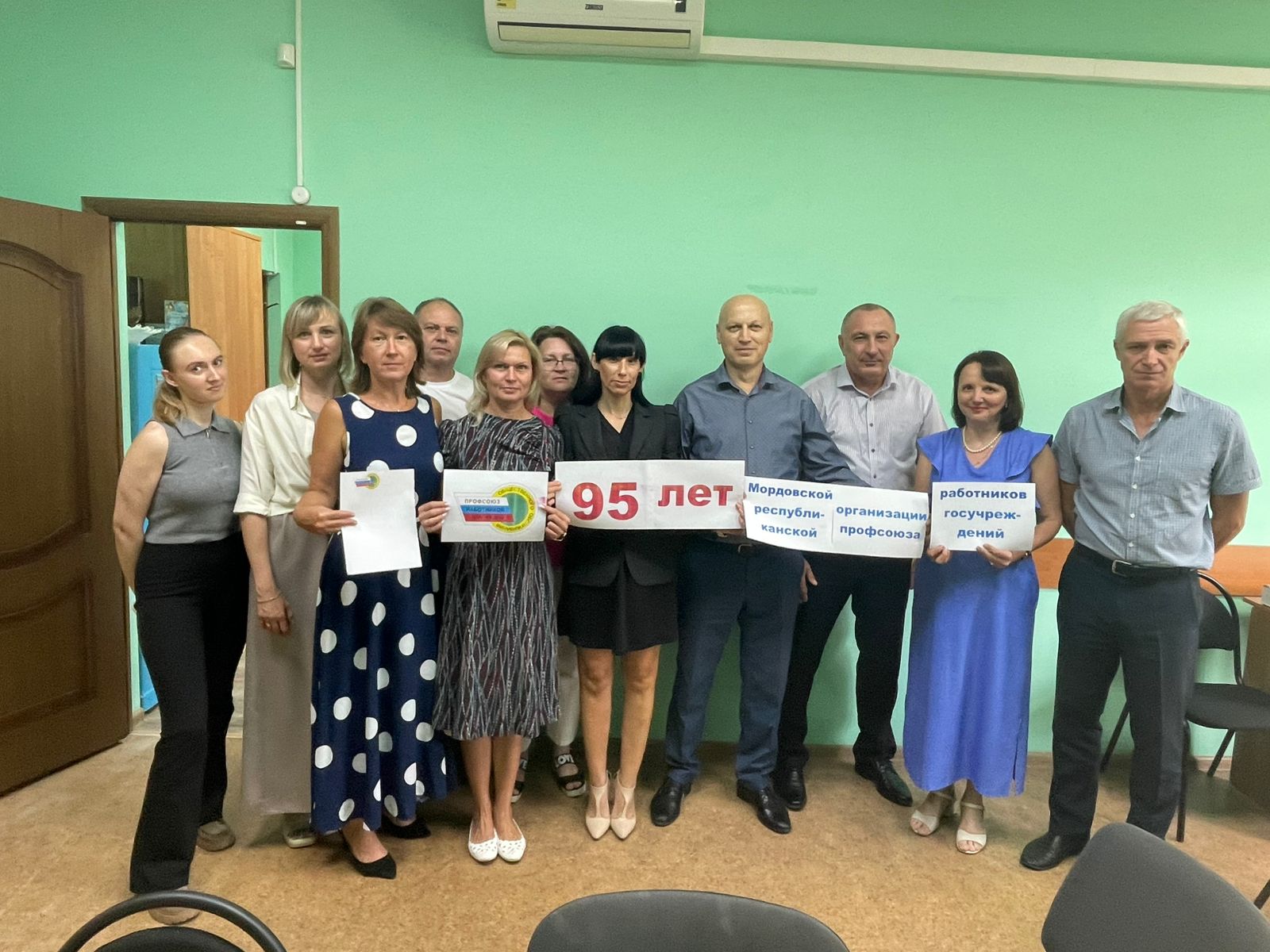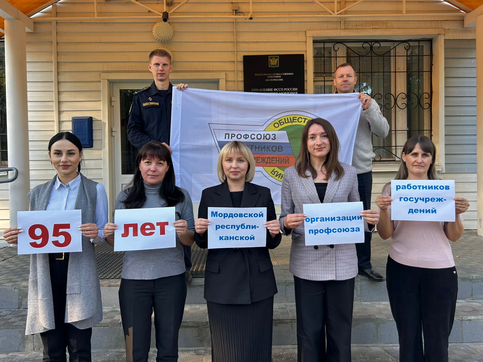 К 95-летию Мордовской республиканской организации профсоюза работников государственных учреждений и общественного обслуживания РФ профсоюзные комитеты Медсанчасти №13 ФСИН России, Управления Федеральной службы судебных приставов по Республике Мордовия и филиала ФГУП «Охрана Росгвардии по Республике Мордовия» присоединились к флешмобу и поздравили членов профсоюза, активистов, ветеранов профсоюзного движения с юбилейной датой.
