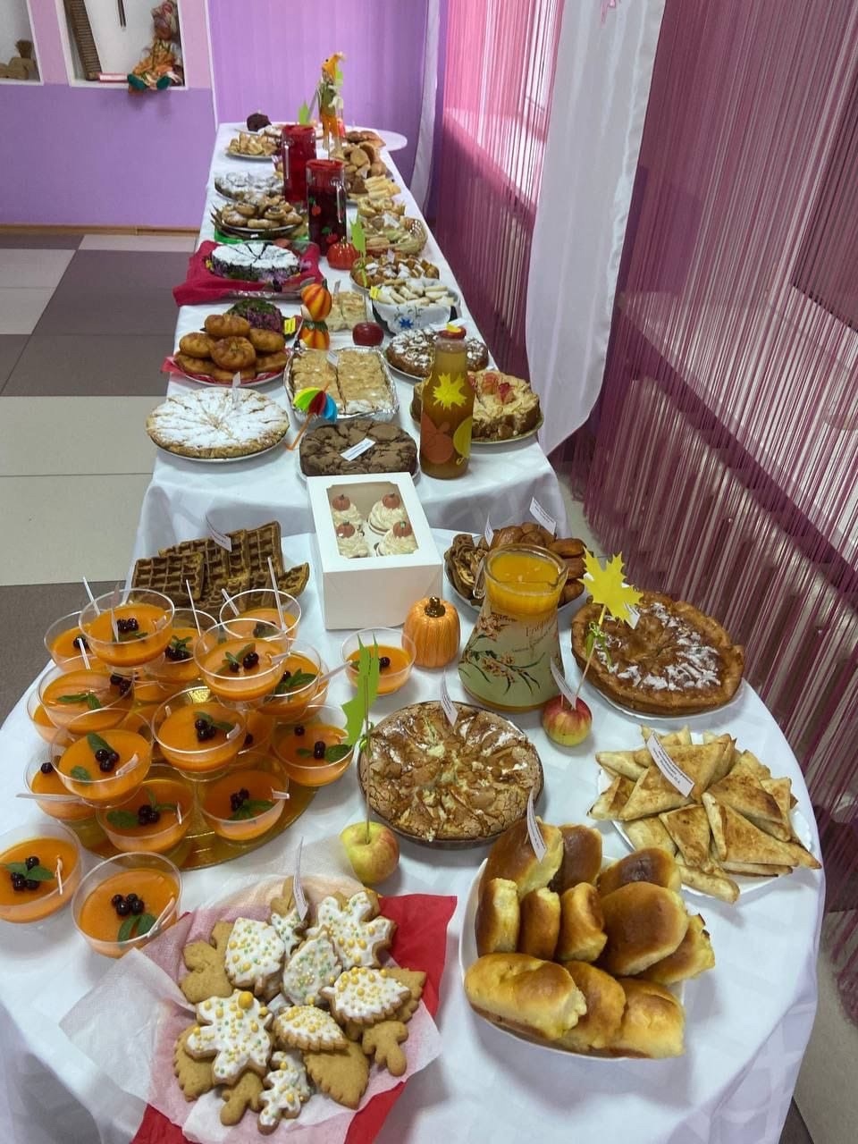 Под аккомпанемент музыкального сопровождения началась дегустация приготовленных блюд сотрудниками приюта. Какое разнообразие царило на столах: здесь и многочисленные виды шарлотки, и чудо-пироги, и восхитительные пирожные.